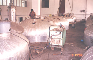 本廠引進成套專業加工不銹鋼的先進設備,以雄厚的技術實力,先后為眾多廠家生產整套飲料設備,整套的化妝品設備,不飽和樹脂生產的全套設備,整套的粉體混合輸送生產線及其他冷凝罐、熱交換器、過濾器、反應釜等不同規格的容器和不同類型的傳輸設備,產品有效地利用空間,做到美觀實用。我廠可以根據客戶的要求,提供設計、制造、安裝食品或化工生產線的服務