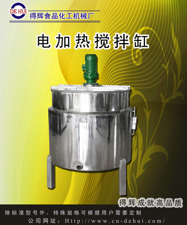 系列不銹鋼電加熱攪拌缸適用于日用化工、精細化工、醫藥、食品等行業廣泛應用。間接加熱缸內物料,使其均勻溶解、調合。它具有結構設計合理、堅固耐用,效率高、運轉平穩、噪音小、機溫低,安裝操作方便等優點。100度以下用水加熱、100度以上用導熱油加熱。可按客戶要求在缸體的表面加上保溫棉及不銹鋼板裝飾,加裝配置電溫度控制箱,節能安全可隨意調節溫度達到生產目的。 |
